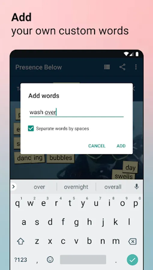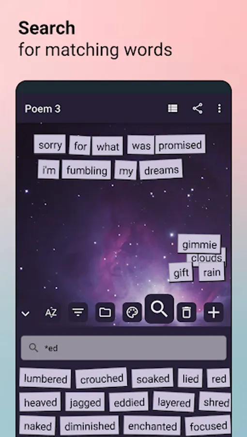 - Adding custom words to your poem and word lists