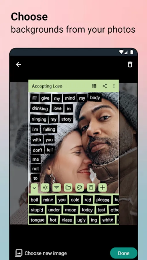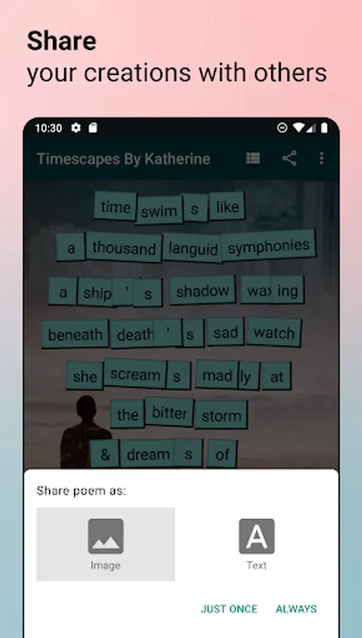 - Sharing your creation (whether it's a poem, lyrics, or a prompt) with friends as either a picture of text
