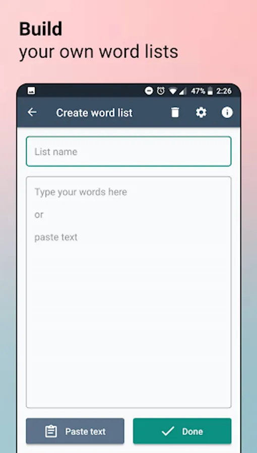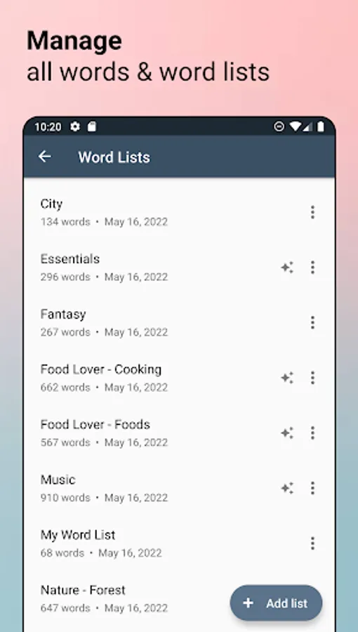 - Importing your own custom word lists in bulk