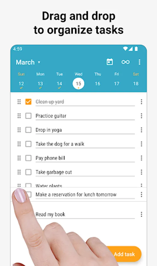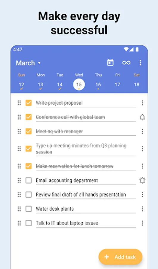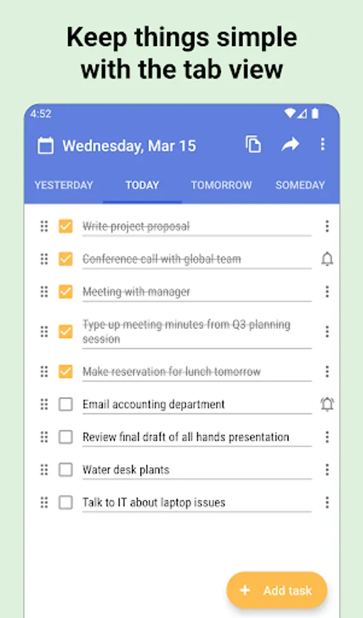 • easily mark tasks on your daily todo list as complete with the tap of a checkbox
