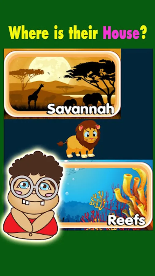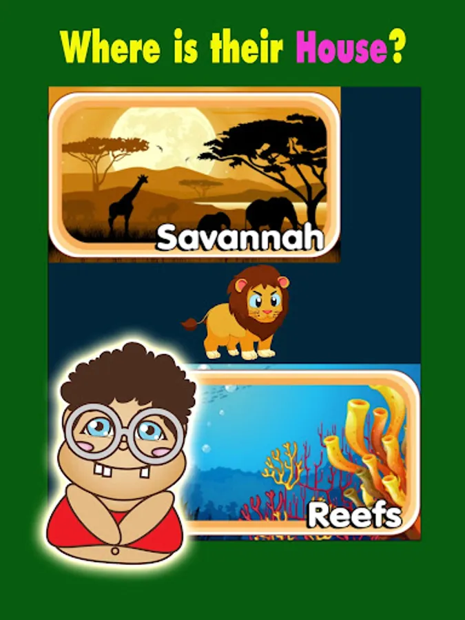 - Your kids can select the correct of animal house: Arctic, Pond, Farm, House, Reefs and Savannah