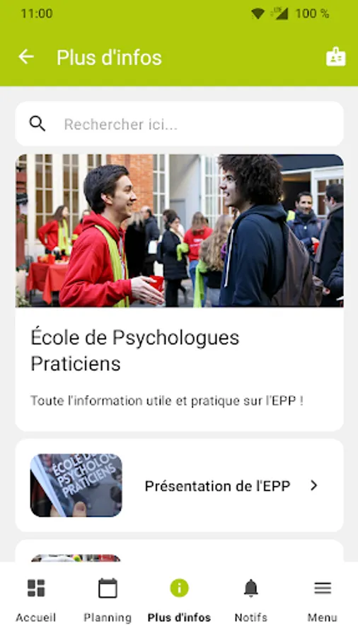 With a few clicks and in real time, find easily your timetable, contacts, informations about school platforms (Pamplemousse, Moodle...) and others practical informations.