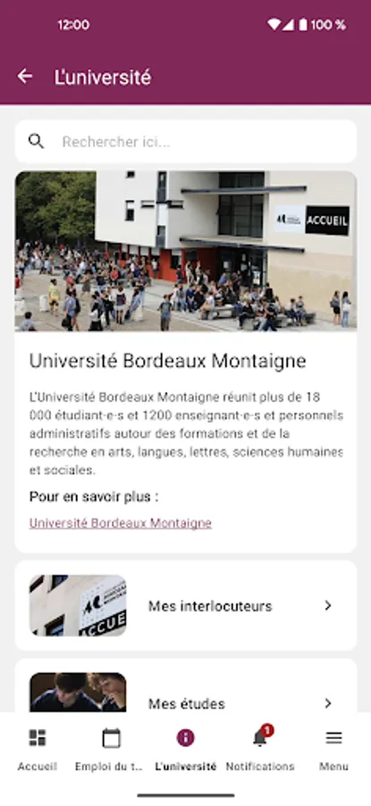 If you are not registered at Bordeaux Montaigne University, the app will enable you to take a look at the campus map, the courses as well as the University’s news and social media.