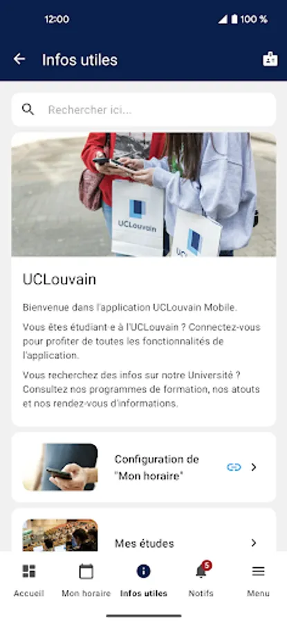 Thanks to UCLouvain Mobile, find all the useful information to fully enjoy your university experience: