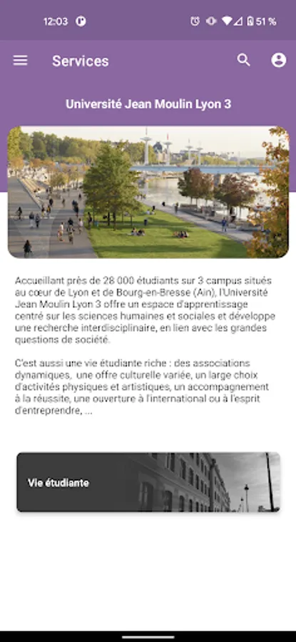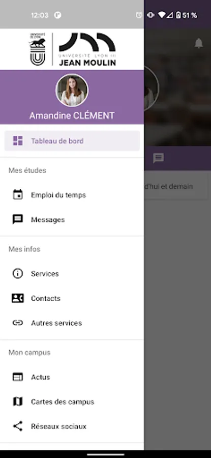 - Messages: receive messages from the university (health information, organization of the establishment, alerts, etc.)