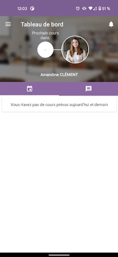 - Timetable. Log in with your university credentials and see your schedule in real time. You will also receive notifications in the event of a change (absence of a teacher, change of room, etc.).