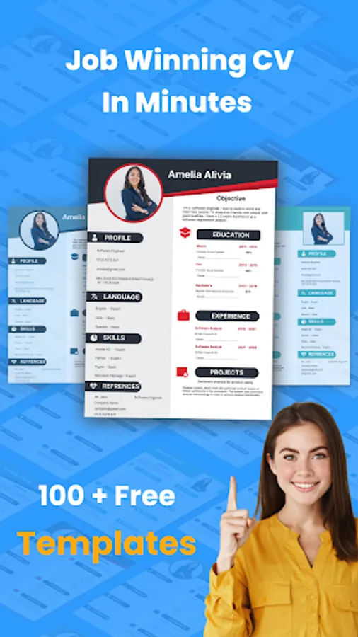 Resume Builder - CV Maker, is a totally free Resume Creator app. This CV Builder makes it very easy to create a CV Resume and provide a Curriculum Vitae. Professional Resume Builder has amazing Resume Templates in different colours, which lets you create a Resume Free. You may quickly and easily generate a professional CV for any type of job in minutes.
