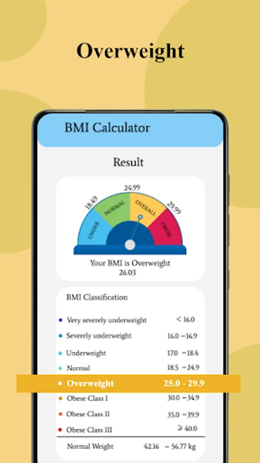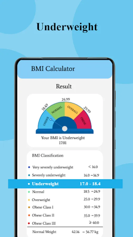 Height Calculator App saves you from being overweight after entering the details it tells you about that you are underweight, overweight, or normal. It also gives detailed information about obesity by dividing it into three classes. This BMI Calculator App also tells about the normal weight according to your height.