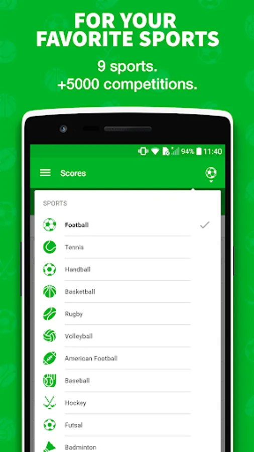 Follow all the scores in real-time for all sports on your mobile and do not miss the results of your favorite teams!