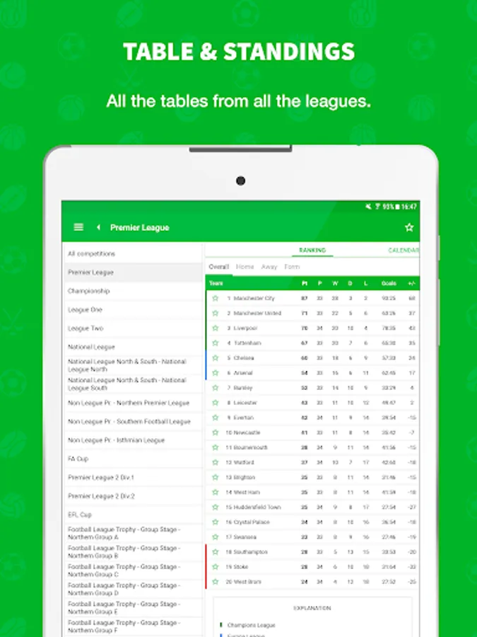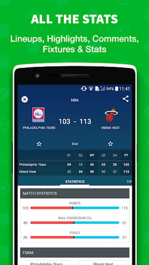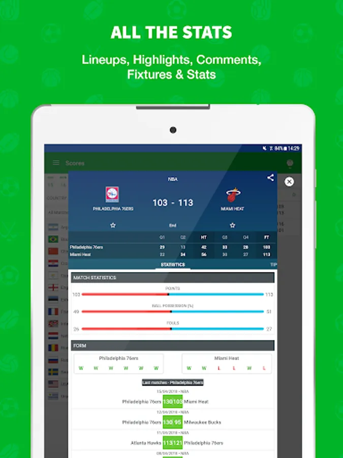 - STATISTICS: Analyze your favorite teams and players stats and performance