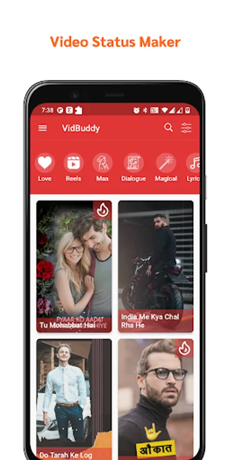 👉 VidBuddy app to make lyrical video status song for your status with your photos in one minute using latest trending song.