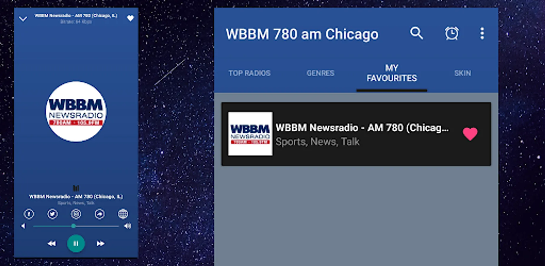 * To find your application you just have to enter the words "wbbm" or "780 am" or "Chicago" and the application will show you the matching radios.