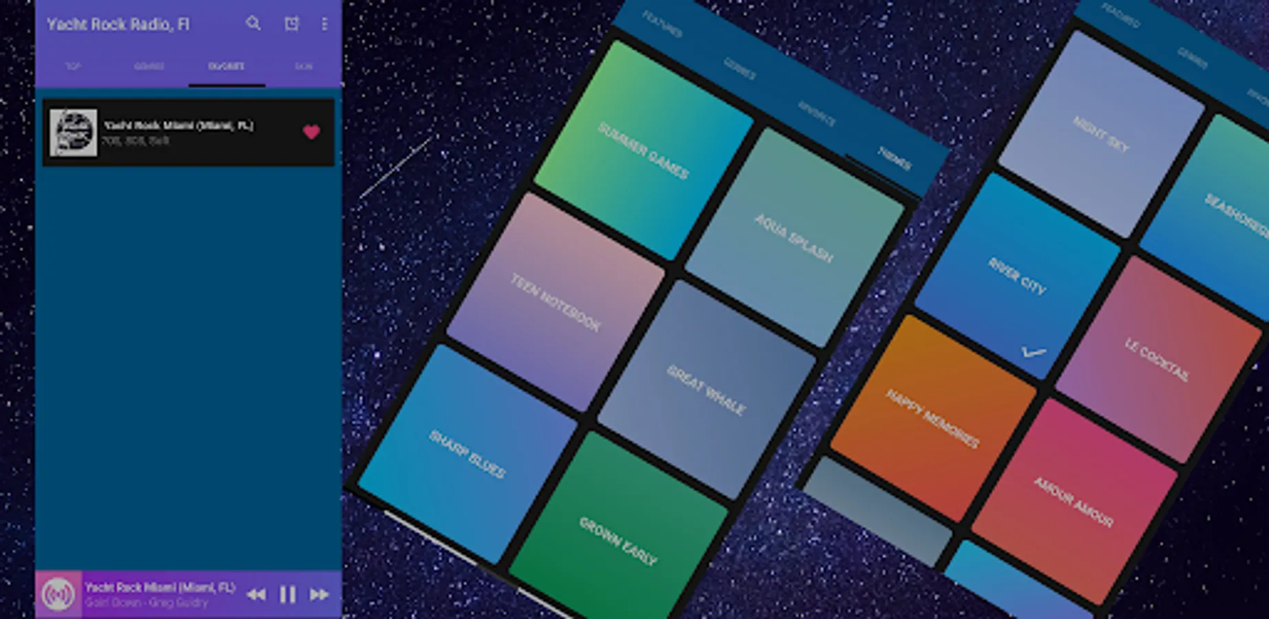 * To find your application you just have to enter the words "Yacht" or "Rock" or complete keywords "yacht rock" and "Miami" too. The application will show you the matching radios.