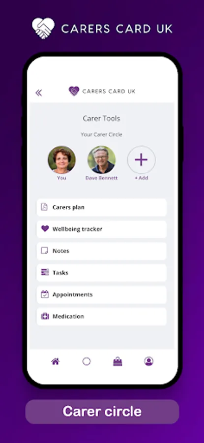 Our 'Carer Circle' tool allows you to create a circle of care for the person you look after. It helps you organise your care by allowing you to add notes, tasks, appointments, medication lists as well as monitoring the wellbeing of the person you care for. If you share the responsibility of caring with someone else then you can invite them into your Carer Circle. It’s makes the task of sharing responsibility easier by helping you work as a team. Even if that other person isn’t heavily involved in a caring role it’s still an excellent way for them to be kept up to date.