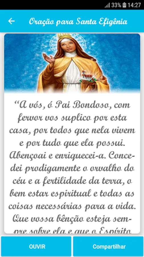 Through the intercession of Santa Efigênia, whose roof you protected, answer our prayers...