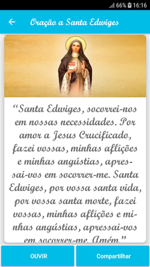 Saint Edwiges, protector of the indebted, increase my confidence in divine providence so that there is no lack of daily bread, and that at the end of the month there is no lack of necessities... see more in the application.