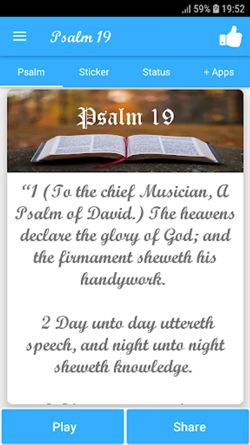 1 (To the chief Musician, A Psalm of David.) The heavens declare the glory of God; and the firmament sheweth his handywork.