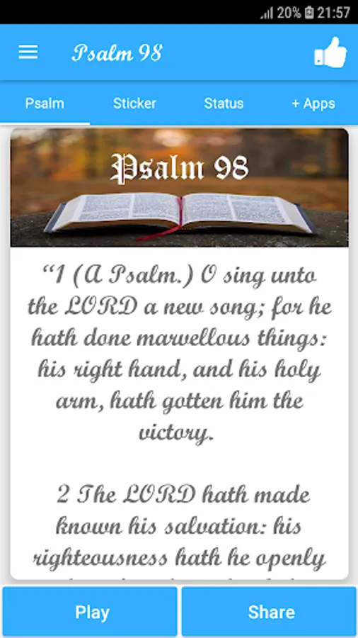 1 (A Psalm.) O sing unto the LORD a new song; for he hath done marvellous things: his right hand, and his holy arm, hath gotten him the victory.