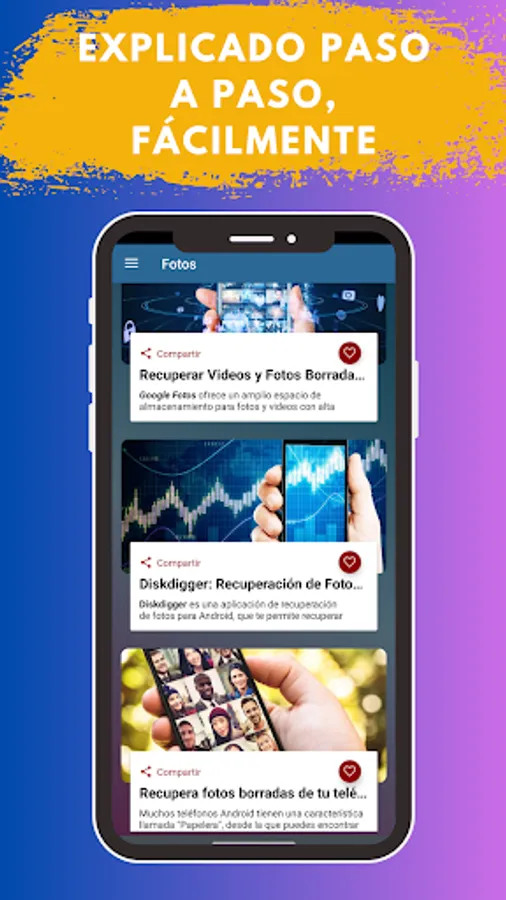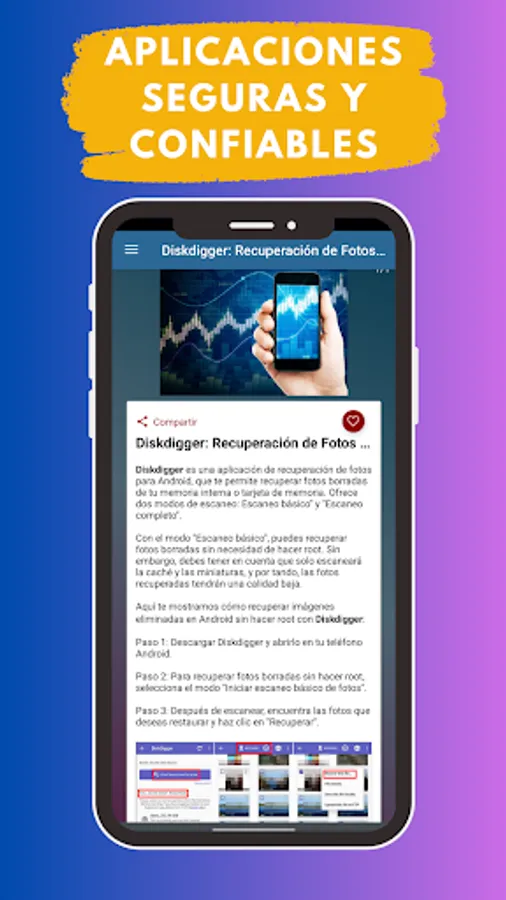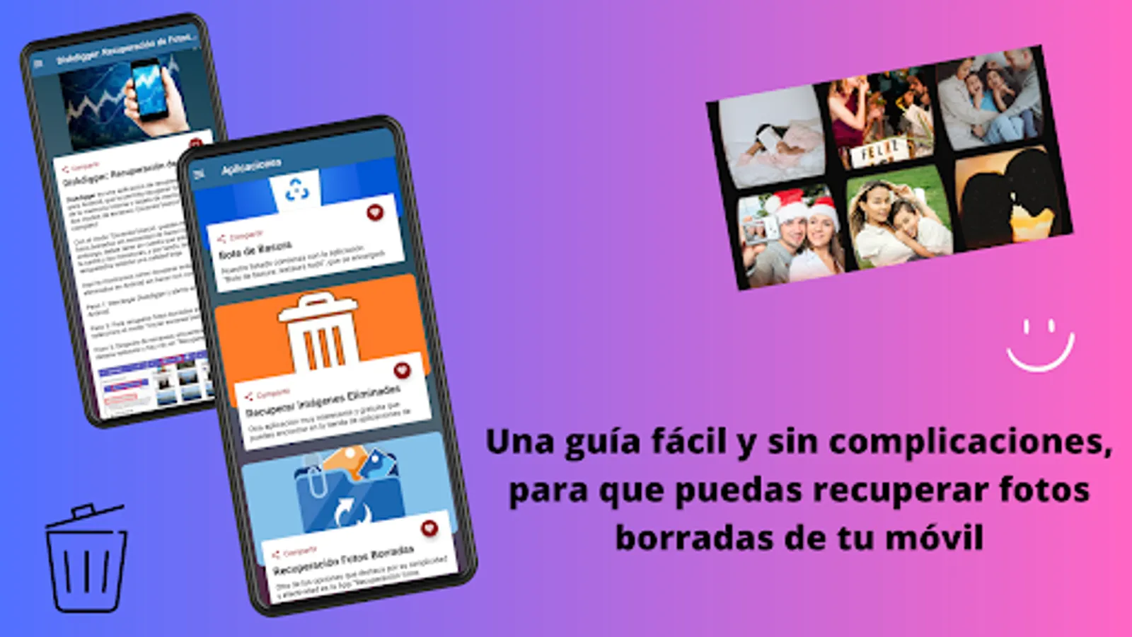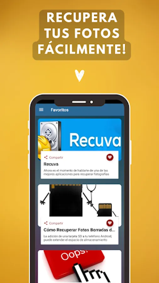 Important note: Remember that Recover Deleted Photos Guide is an application that guides you in a simple way on how to recover deleted photos from your mobile device. It is not an App to recover photos by itself. We provide you with information on the best programs and guide you step by step through the process.