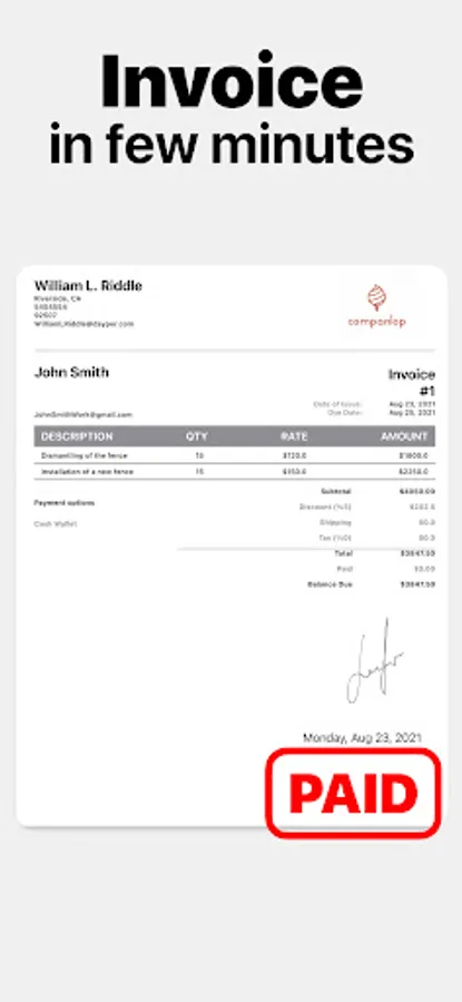 Invoice Maker it is free app for create and send professional invoicing & bills & PDF invoice templates & estimates & receipts & quotes & purchase orders & proforma invoices and more to your customers.
