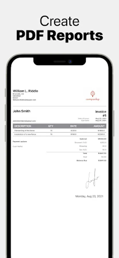 Create, send, email, print and track professional invoices and estimates & quotes & billbook on your phone.