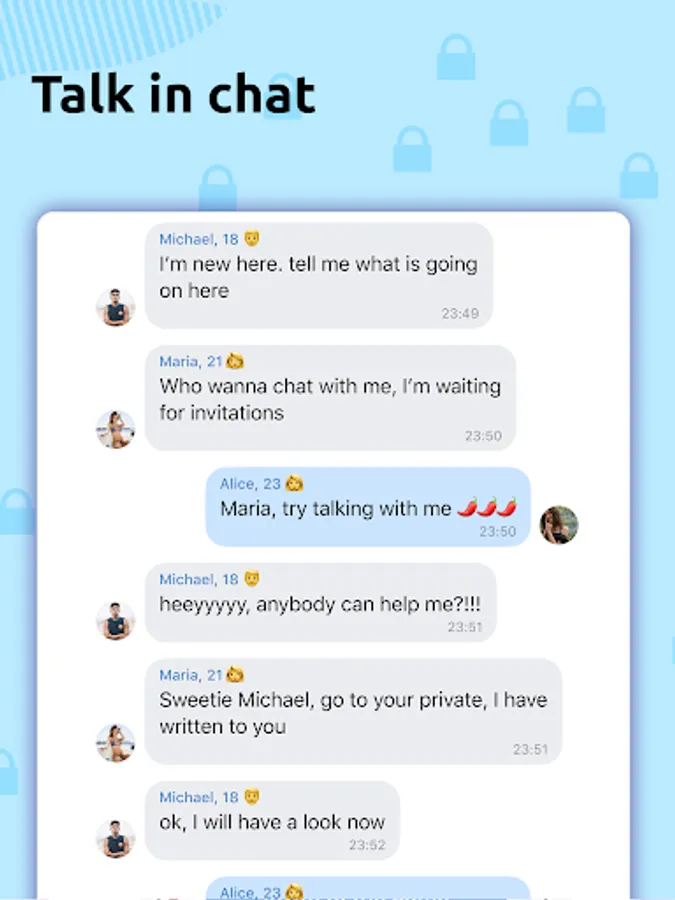 It’s an anonymous chat to meet new people. In the application you will find many real people from all over the world for conversations and dates online.