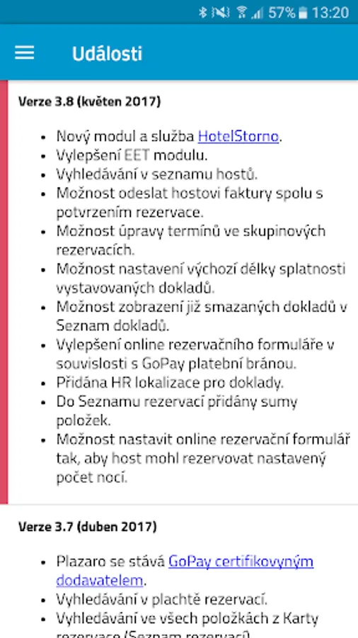 In the Events are displayed the latest information and tips related to the reservation system and the reception Plazaro.