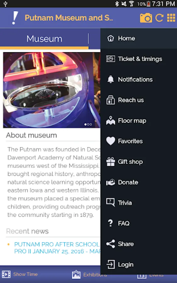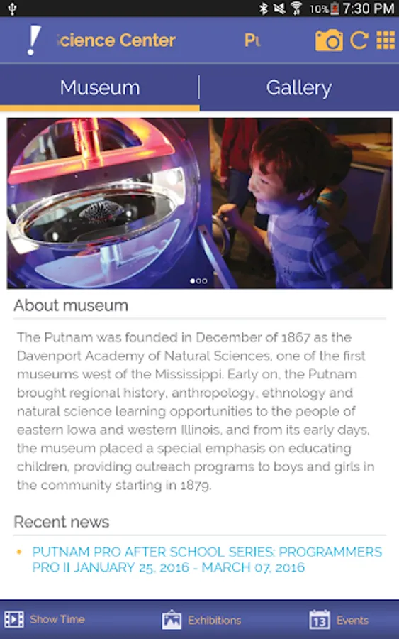 Explore the Putnam Museum & Science Center in Davenport, Iowa with easy-to-use maps, tools, and show timings. Features include the following and more: