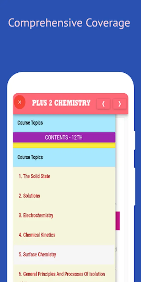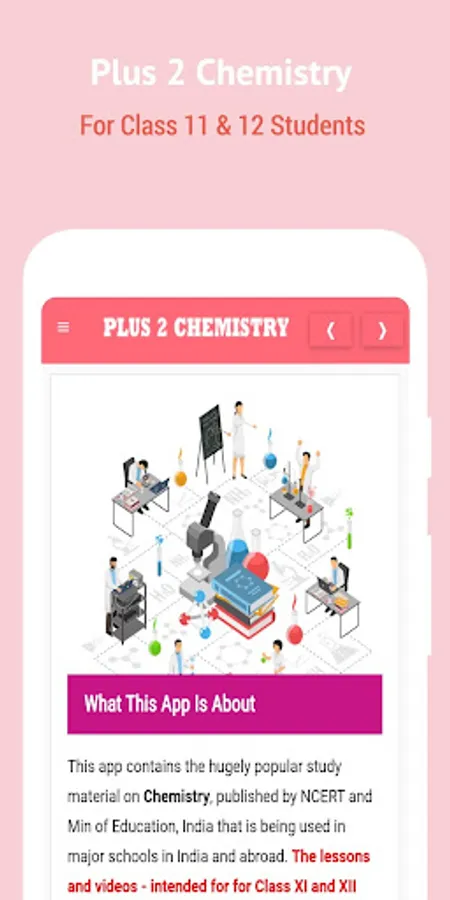 Plus 2 Chemistry, is a digital self-study course, with chapters on: