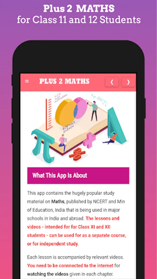 Plus 2 Maths, is a digital self-learning course, with chapters on: