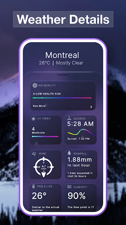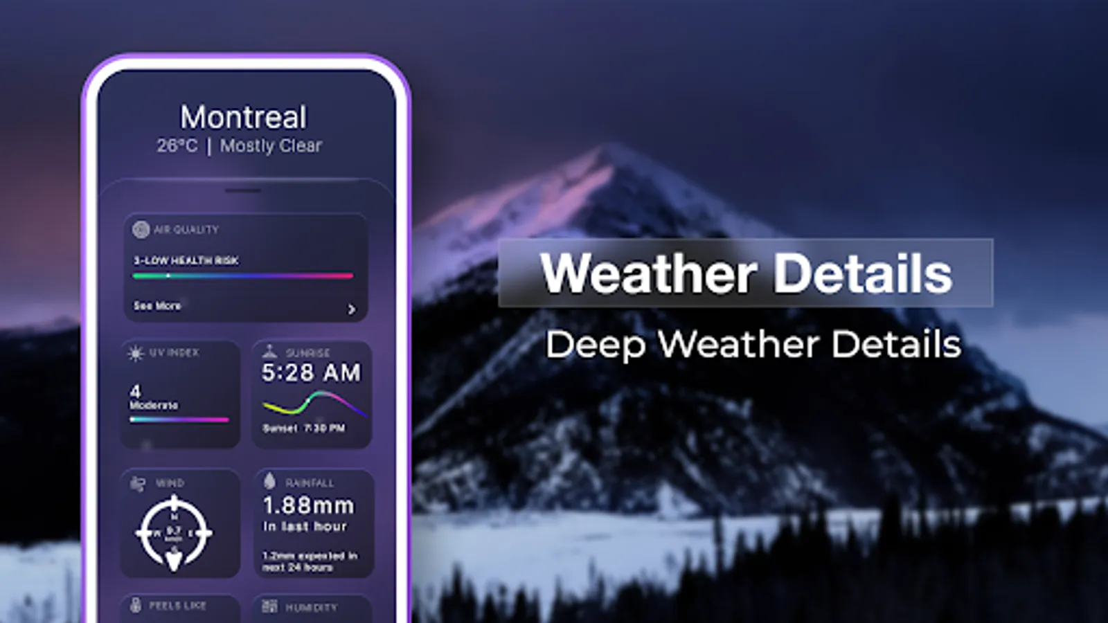 Weather forecast & widgets app channel facilitates you with detailed weather updates, including weather conditions, maximum/minimum temperatures, precipitation, and wind pressure. Get notified about live weather forecast. The app offers accurate hourly local weather forecasts and rain, storms, snow, and real-time weather updates.