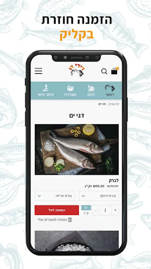 Didi Dag Fish Marketing Ltd. markets all types of fresh and frozen fish and offers a reliable service and a great deal of over 50 years. The company has a lot of seniority and experience in the field, offers quality and professional services and maintains one of the highest standards and traditions that exist in the fish industry today. Staff The company pays attention to every detail and markets pond fish such as: bream, sea bass, sea bream, sea bream, locust, sole, mullet, bass, tilapia, tuna fillet, Norwegian salmon fillet, trout and more.