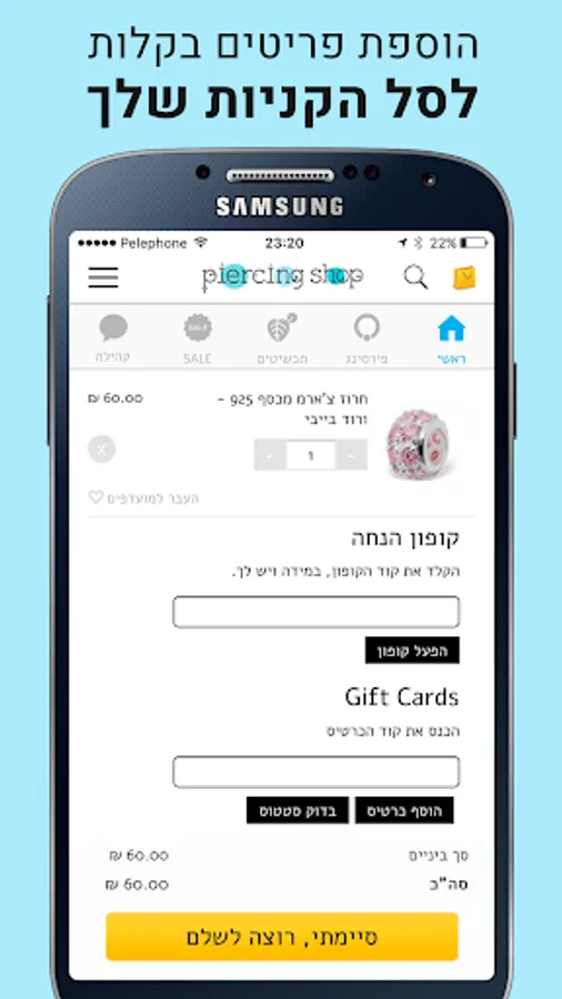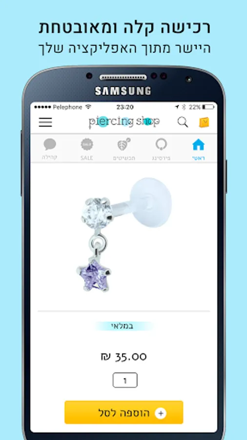 Welcome to the piercing shop app, web store to sell jewelry and body piercing jewelry designed the most innovative and largest in Israel.