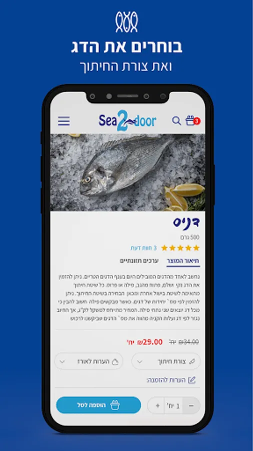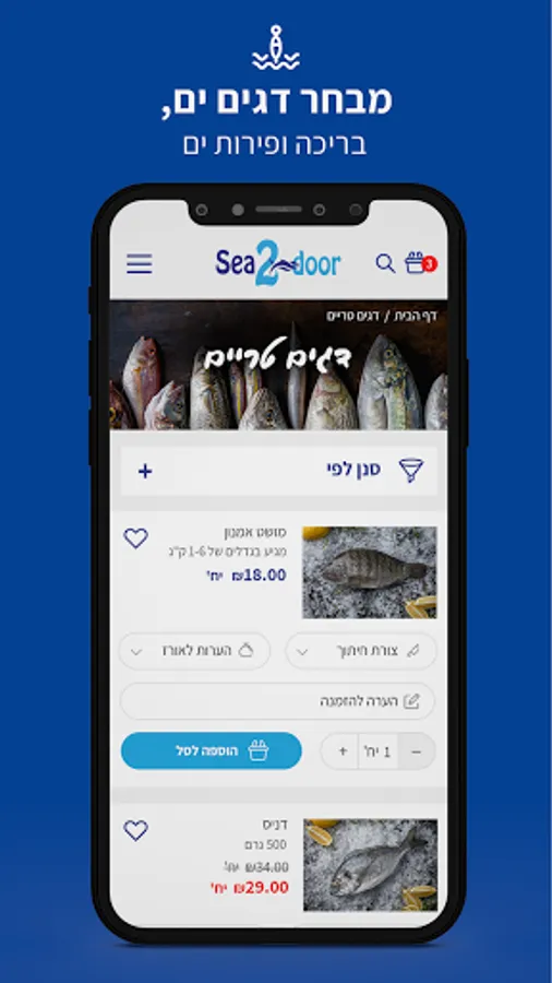 Sea2door was born out of the knowledge that the Israeli public is interested in receiving fresh, high-quality sea fish on a daily basis to the house. The fish is packaged and processed in our factory to the highest standards both in terms of the product itself and in terms of the level of handling of the product.