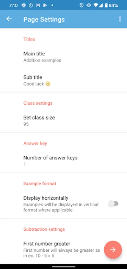 Math worksheets is not just an app that generates math worksheets. This app is designed for teachers to generate a single pdf, of many sheets, in one time, to distribute to the class. Each student will receive a different worksheet with similar examples as the rest of the class. All the teacher needs to do is choose the kind of examples, set the class size (1-1000 or more !), set how many answer keys and let the app do the work. The teacher can then click to email the pdf to the school office or print etc. . This is app is great for math teachers, home work sheets, home schooling or parents to give children extra math practice. This is app is capable of generating addition (plus in children language) , subtraction (minus), multiplication (times), division, integers (negatives), decimal sheets. It also generates fractions with all math operation and pre algebra equation sheets. There are settings for division with and without remainders. Also find settings for horizontal or vertical format, division symbol or long division format. All in simple user friendly format. Just download and have thousands of sheets emailed in seconds !!! This is app is also ideal for students of all ages to generate study sheets to study and practice for exams and school tests. It was designed in a very simple format for them to have many sheets in seconds. They can print as many as necessary until they are comfortable with the arithmetic and succeed in school.