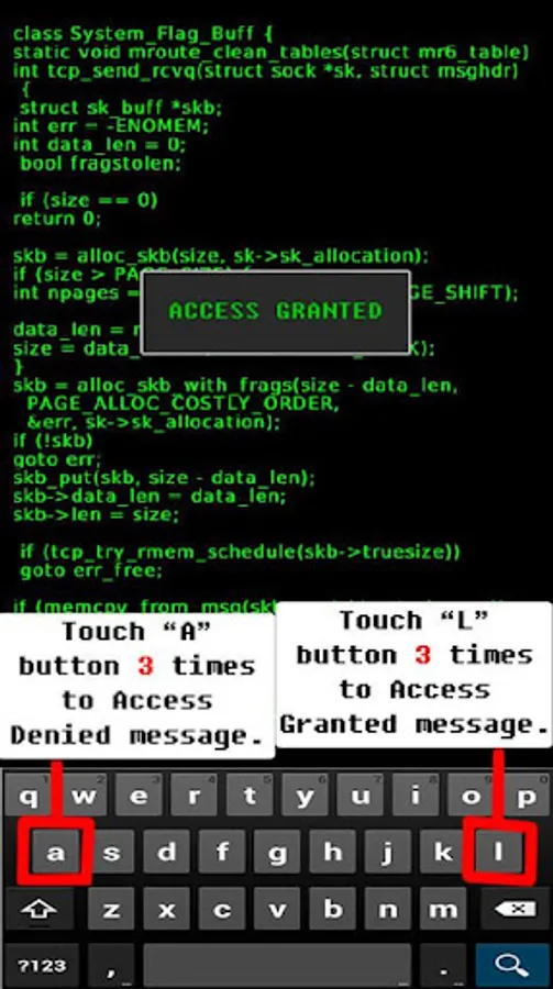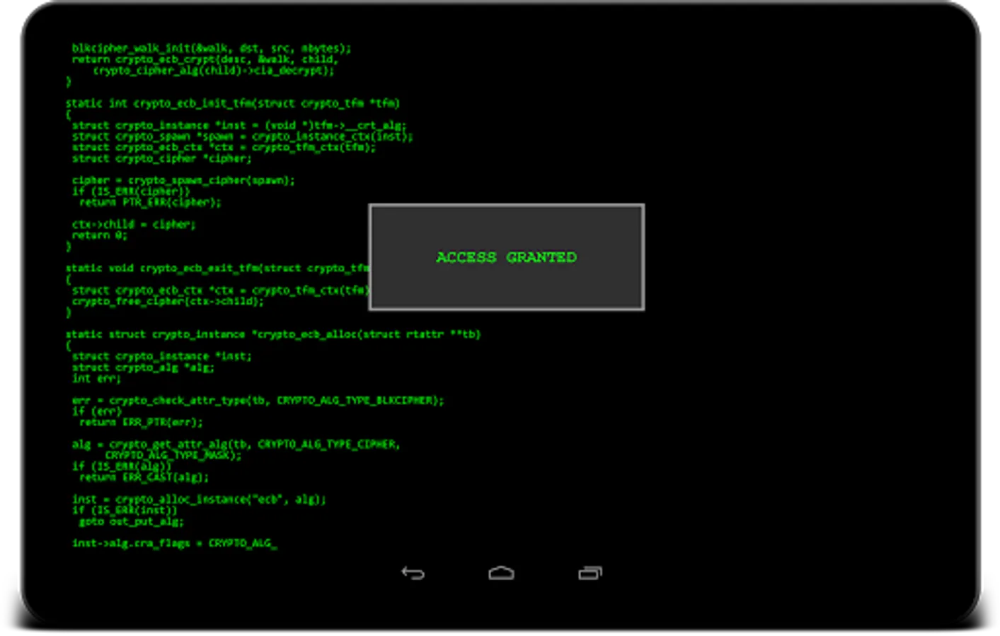 Embody the hackers of 80's and 90's cinema, outputting green code at blazingly fast, unrealistic speeds! Trick your friends into thinking you're a real hacker with Computer Hacker Prank, featuring thousands of lines from the Linux kernel source code that'll make you look like an authentic hacker!