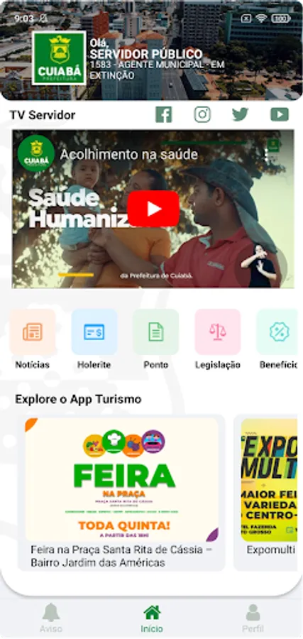 We present the Cuiabá Server App, a platform developed with excellence by the DTI (Directorate of Information Technology) to serve exclusively municipal servers. With this innovative application, you will have easy and secure access to your functional information, being able to issue payslips and timesheets directly from your mobile device.