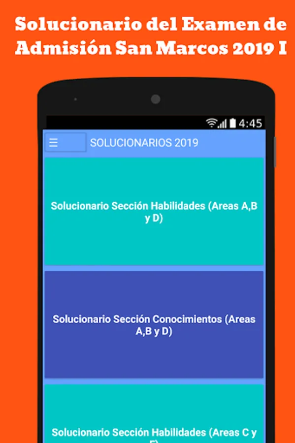 Currently we have the San Marcos 2019 I Admission Exam but soon we will get other applications with exams from UNMSM, UNI, UNFV, UNAC, UNALM, PUCP, ULIMA, UNSA, UNSCH, UP, USMP, URP, ESAN, USIL, UPC.