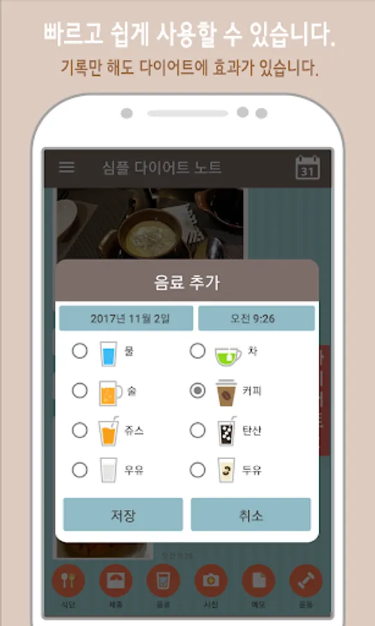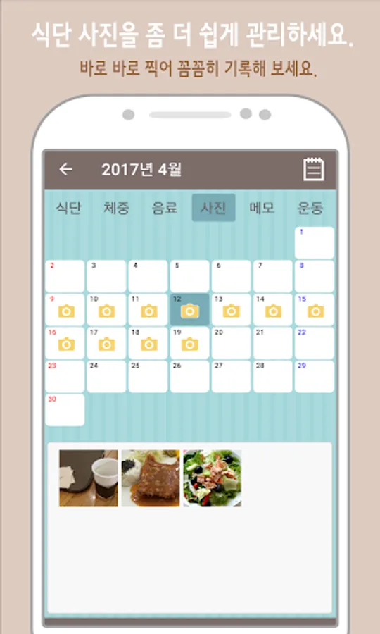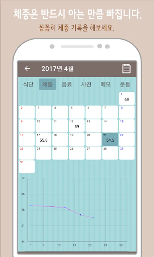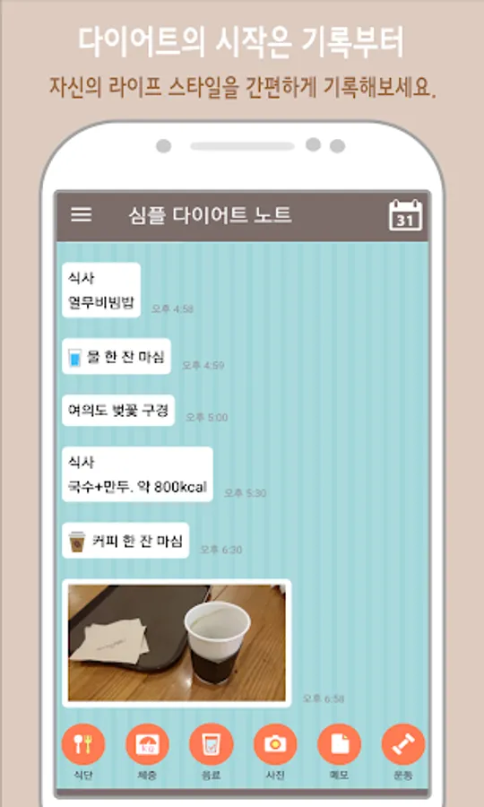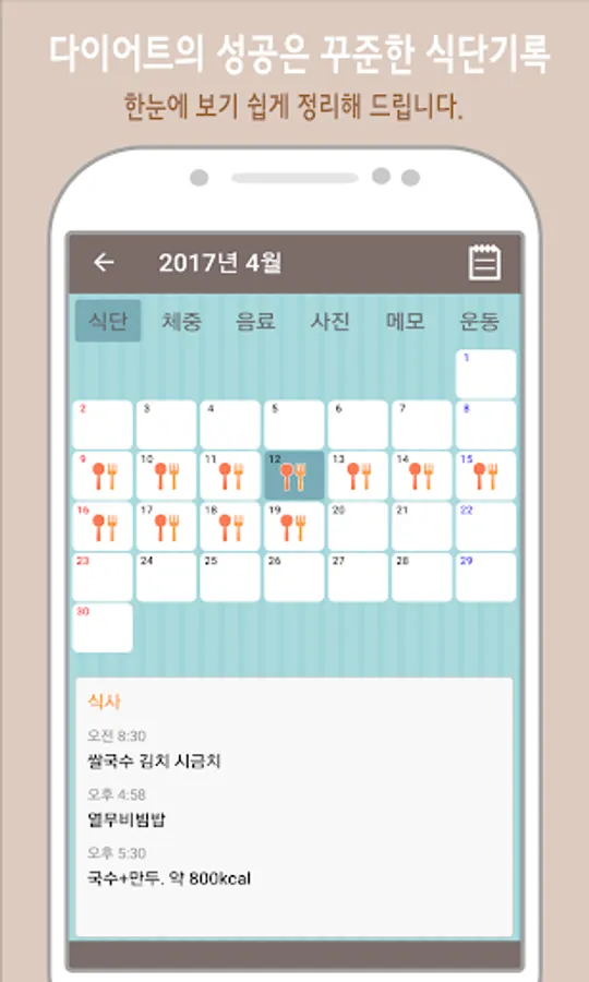Easily record a variety of information related to the diet such as diet and exercise, weight and check the calendar.
