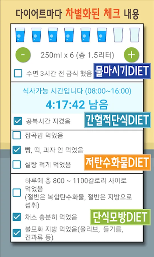 Eight effective and popular diet plans are supported, and you can add and change them to suit you.