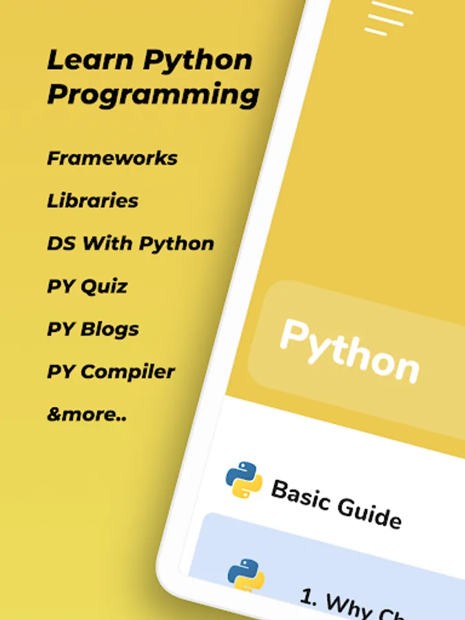 Python is a powerful general-purpose programming language. Our Python tutorial will guide you to learn Python one step at a time with the help of examples. This app gives enough understanding on Python programming language. This app will give you a full introduction into all of the core concepts in python.