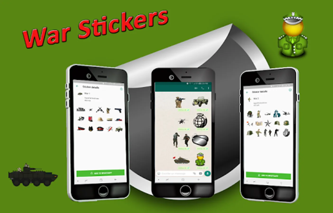 War Stickers for WhatsApp are labels for WhatsApp of War Stickers, Army sticker, War Symbols stickers, war weapons Stickers, Soldier stickers and many more War stickers.