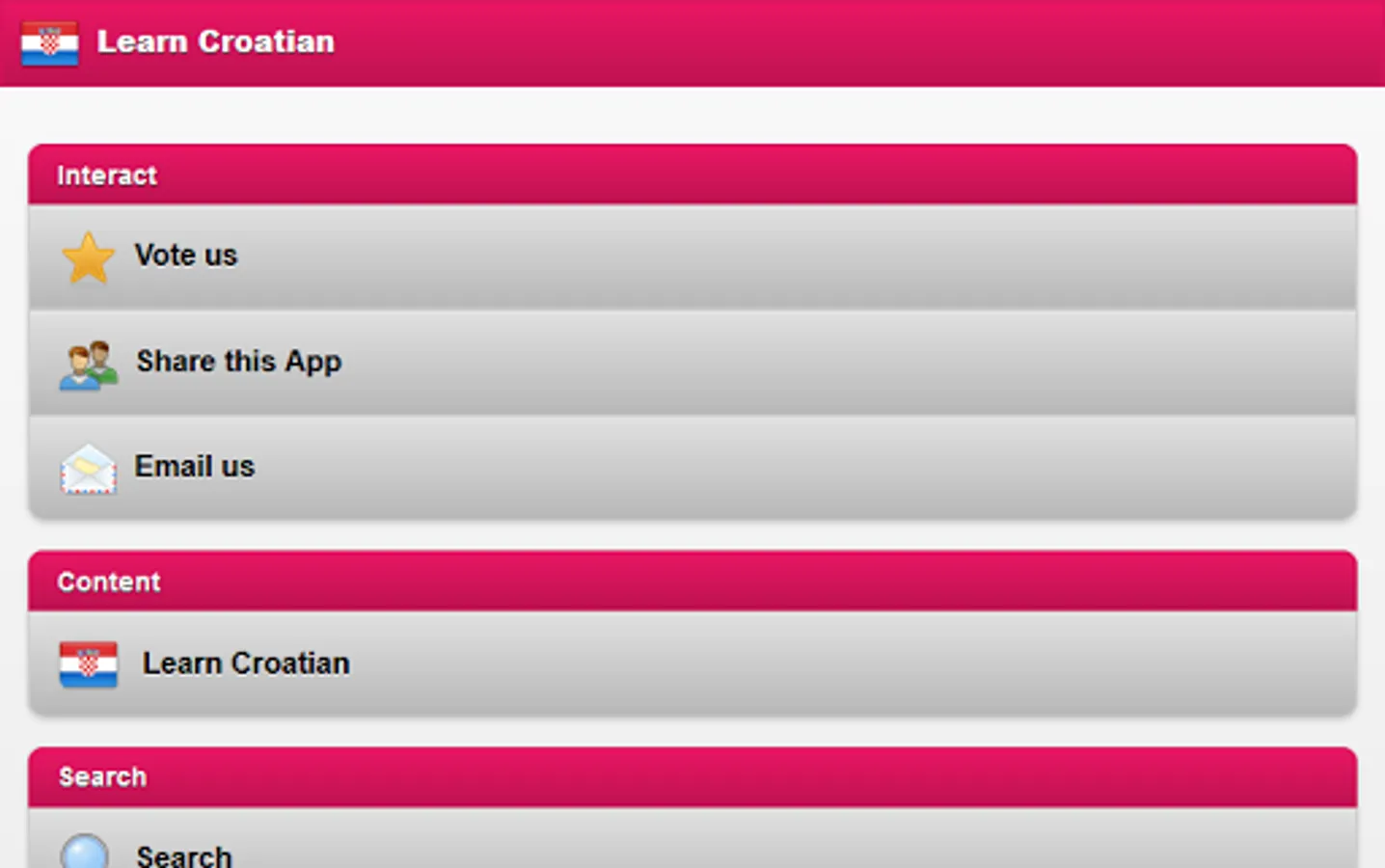 If you ever wanted to learn the Croatian language now you can do it with ease with this app. Learn more than 100 Croatian words and expressions, with our one selected lessons. It's super easy and intuitive. Before travelling to Croatia you learn the language with your mobile phone or tablet. The language is very similar to Serbian and Bosnian. Just follow our selected tutorials and learn how to write, speak Croatian in a few days.