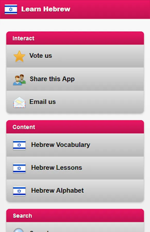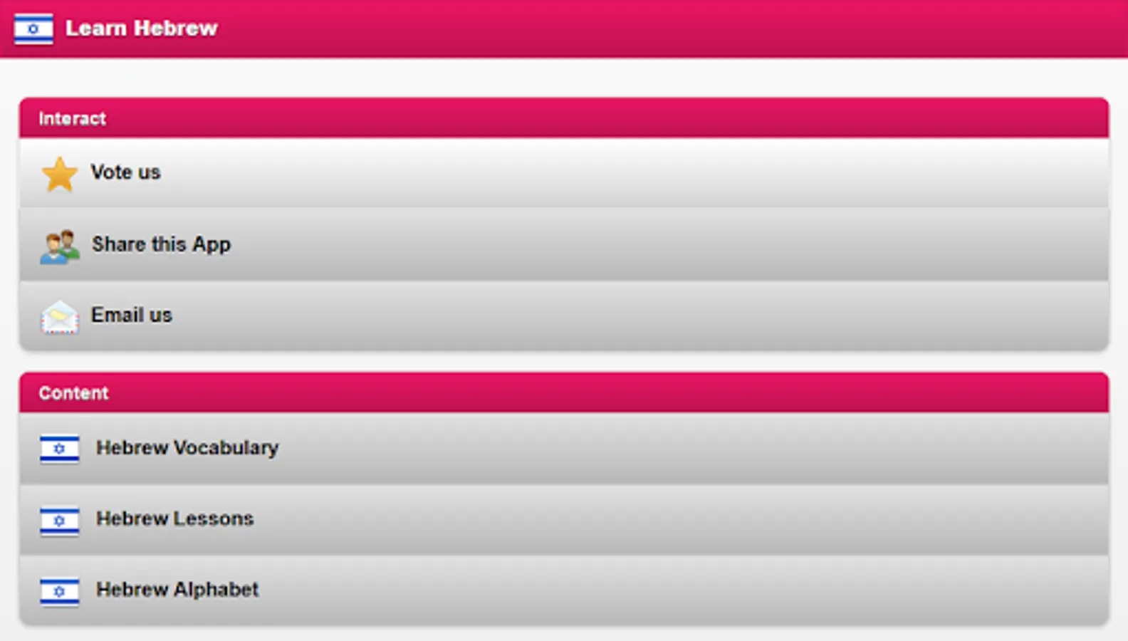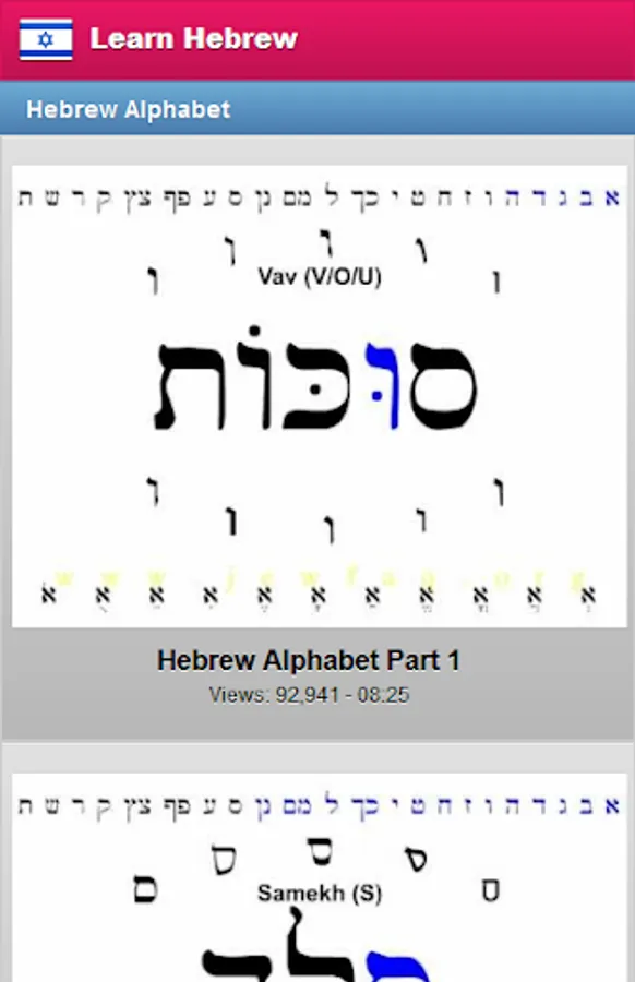 If you ever wanted to learn the Hebrew language now you can do it with ease with this app. Learn more than 100 Hebrew words and expressions with our one minute lessons. It's super easy and intuitive. Before going to classes you can try to learn some Hebrew with your mobile phone or tablet. Now you can travel to Israel safely. Just follow our selected tutorials and learn how to write, speak Hebrew in a few days. It's free, easy and intuitive.
