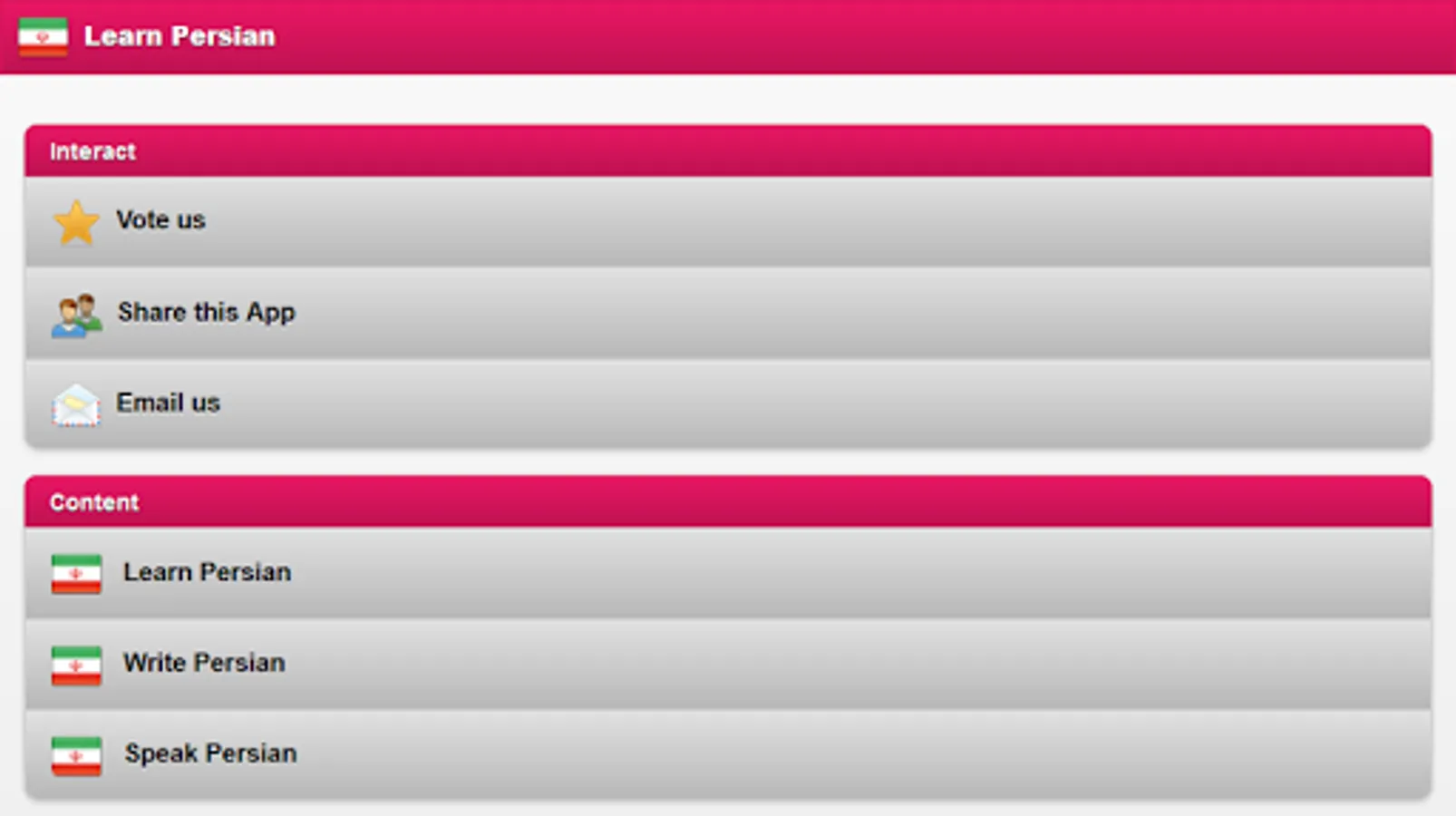 If you've always wanted to learn Persian, or Farsi, you can now do so easily with this application. Learn more hundred words and expressions Farsi language with our selected lessons. It's super easy and intuitive. Before going to school, courses or classes, learn some Farsi with your mobile phone or tablet. Now, with the Persian language, you can travel more safely Iran. Just follow our selected tutorials and learn to write, speak Farsi in a few days.