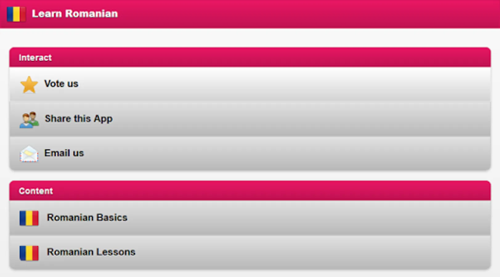 If you always wanted to learn the Romanian language now you can do it with ease with this app. Learn more than 100 Romanian words and expressions with our selected lessons. It's super easy and intuitive. Before going to school, courses, or classes, you can learn a bit of Romanian with your mobile phone or tablet. Now you can travel to Romania safely. Just follow our selected tutorials and learn how to write, speak Romanian in a few days.