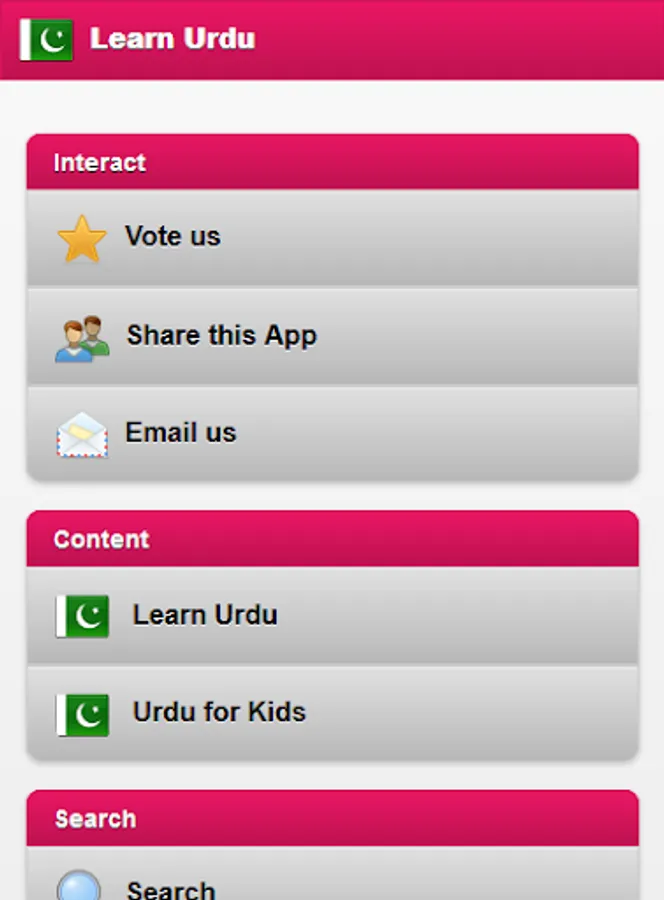 The app Learn Urdu is part of Learn For Free project. With our courses, you can study different languages including Spanish, French, English, German, Portuguese, Russian, Chinese, Japanese, Korean, Turkish, Polish, Thai, Tagalog, and many more. And the best part. It's completely free!