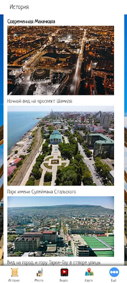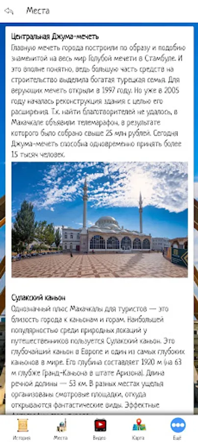 In the application you can make your first acquaintance with Makhachkala, choose a place to travel by watching the sights and video reviews. The application also contains information about tour agencies and hotels offering their services in Makhachkala.