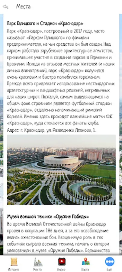 In the application, you can make the first acquaintance with the city of Krasnodar, choose a place for a trip by looking at the sights and video reviews. The application also contains information about tour agencies and hotels offering their services in Krasnodar.