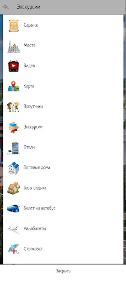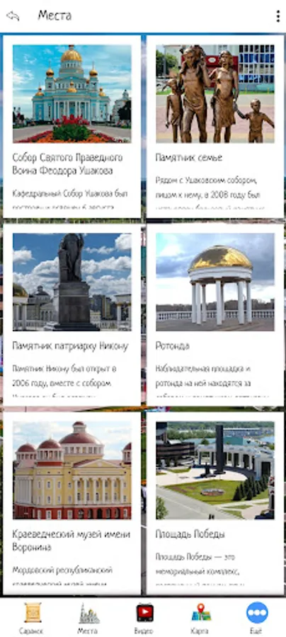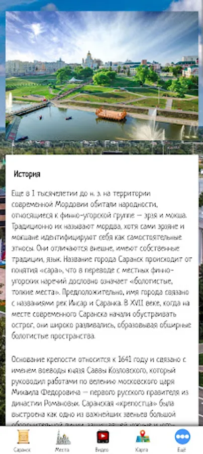 In the application, you can make an initial acquaintance with Saransk, choose a place to travel by looking at the sights and video reviews. The application also contains information about excursion bureaus and hotels offering their services in Saransk.